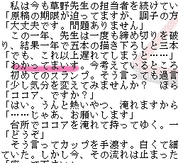 × [PR]上記の広告は3ヶ月以上新規記事投稿のないブログに表示されています。新しい記事を書く事で広告が消えます。 ↑のような誤字を見つけて修正して、html形式に直してUPする簡単なお仕事。 こんばんは、しょうです。 長らく放置していたサイトですが、やっとこさTYPEの尻を引っ叩き短編を2作程書かせました。 長編ばかりで短編を書いたことのないTYPEに課したルールは、 「1600字以内」「指定したお題に沿う」 版権はまだ書かないそうなので、オリジナル縛りで。 先ほどようやくお題ページやらなんやらのデザインが完成し、アップロード! ちょっとダークなものとほのぼのとしたものの2作品です。 個人的には「ココア」がいいですね! TYPE氏本人は女性視点が苦手だと言っていますが、私的には女性視点の方がいきいきとしているように思います。ワルツのハルちゃん然り。 さて。 昨日今日とキャンプに行って大はしゃぎした後でhtmlなんて頭の使うのもの考えたら疲れました。 もう寝ます。 おやすみなさい。 しょう PR